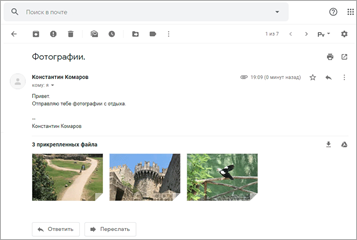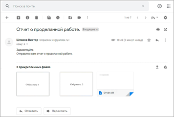 6. Щелкните «Отправить» и письмо с вложениями уйдет по адресу. Вот в каком виде оно поступит: