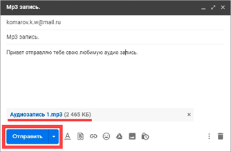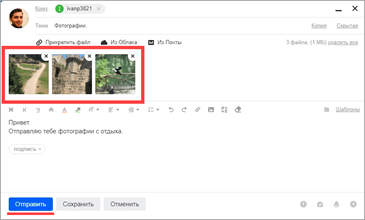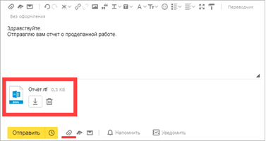 4. Щелкните по «Отправить» и сообщение с вложением уйдет по адресу.