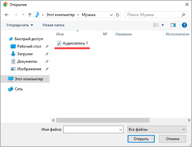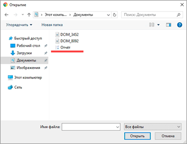 Найдите и отметьте файл для отправки, затем кликните по кнопке Открыть.