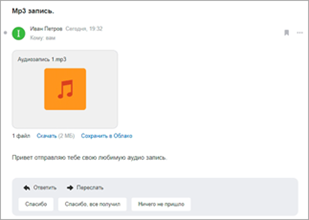 Открыв письмо, получатель увидит и текст, и документ, которой сможет посмотреть или скачать на свой компьютер.