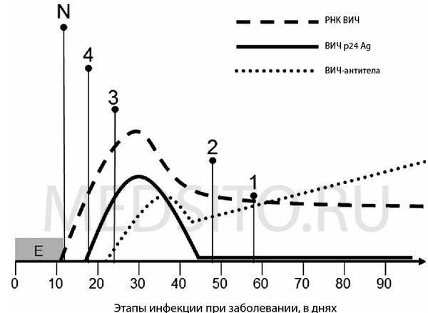 От момента заражения до развития СПИДа болезнь проходит несколько стадий (рис. 2):