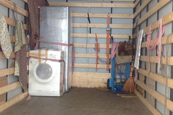 . Машинку следует развернуть боком по направлению движения автомобиля. При этом если в кузове грузового автомобиля имеются другие габаритные вещи, нужно поставить стиральную машину так, чтобы она оказалась зажатой между ними. В этом случае и амортизаторы останутся целыми и никакие патрубки и контакты не пострадают.