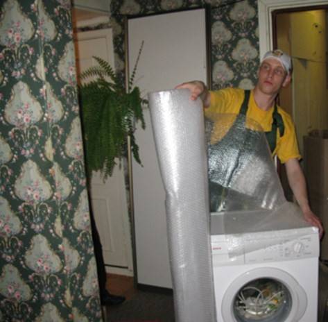 Затем стиральную машинку следует запаковать. Для этого подойдет пенопласт, толстая пленка, картон или плотное одеяло. Здесь сгодятся любые материалы, которые могут эффективно смягчить тряску и удары.