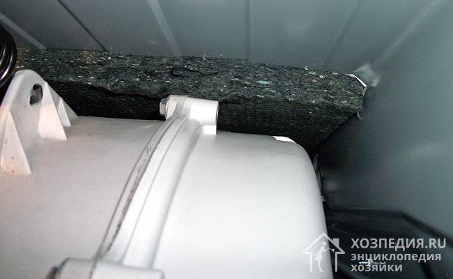 Пространство между баком и стенками корпуса стиральной машины заполняют мягкими материалами