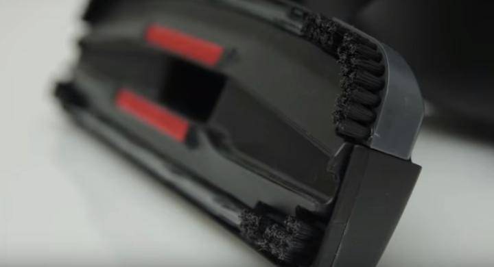 Щетина, которая выдвигается при помощи переключателя, подходит для клининга твердых покрытий. Без нее щетка будет плотно прилегать к поверхности, и пол может попросту поцарапаться. При очищении коврового покрытия роль щетины выполняет ковровый ворс.