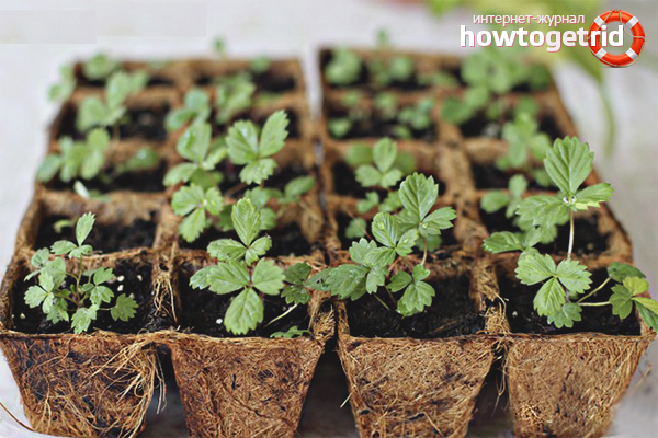 Рассаду с 2 настоящими листами пикируют в отдельные горшки. Через каждые 2 недели в почву вносят удобрения для земляники. Подросшие и окрепшие кусты высаживают в открытый грунт весной или осенью.
