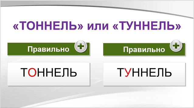 Еще один значимый момент – производные от лексемы тоннель слова пишутся через букву У.