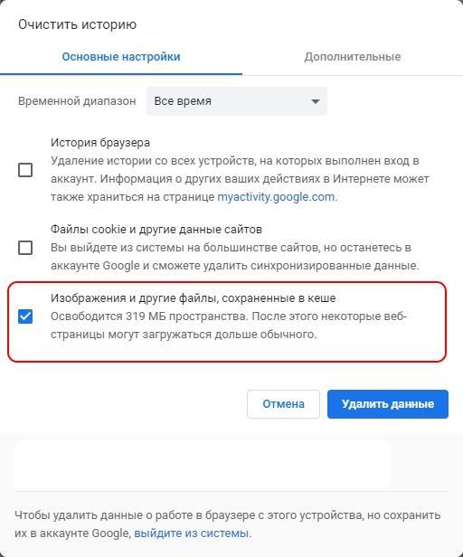 Однако весь кэш занимает определенный объем места, который со временем может сильно разрастись. Чтобы этого избежать, необходимо в используемом браузере открыть настройки историй и удалить данные изображений и других файлов.