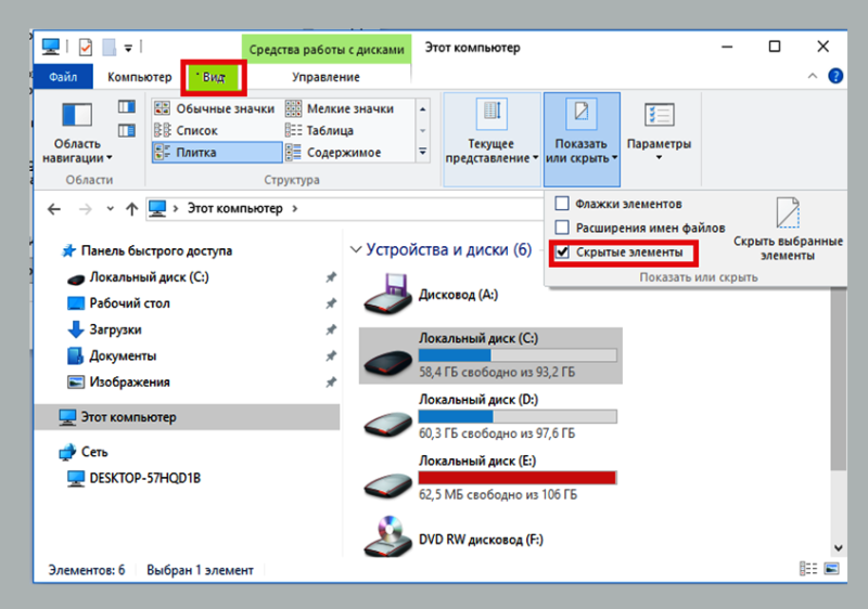 Первый шаг сделан. Теперь пользователю нужно вернуться в диск С, перейти на вкладку «Вид».