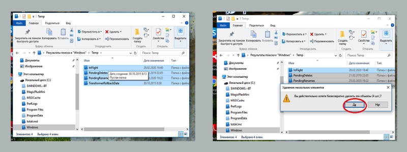 Важно! Удалять саму папку под названием «Temp» нельзя. Можно только очистить ее содержимое