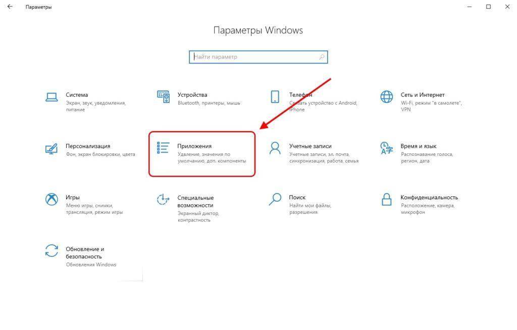 перейти в «Приложения и возможности»;