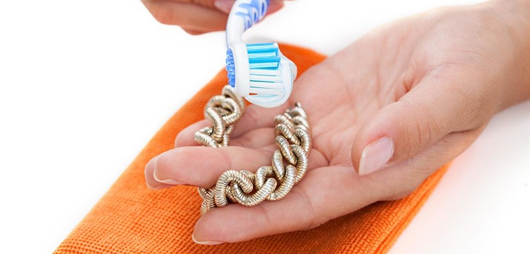 Зубная паста является более мягким средством. Чтобы при чистке не повредить украшения, пасту лучше нанести на салфетку, а не на зубную щетку. Изделия аккуратно потереть круговыми движениями, и промыть водой. Долго тереть не придется, чернота удаляется сразу. Можно добавить к пасте одну пипетку нашатырного спирта. Это усилит блеск изделий.
