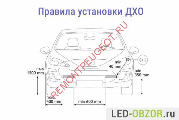 Существую определённые правили монтажа ходовых огней, которые регламентируются ГОСТ Р 41.48-2004.