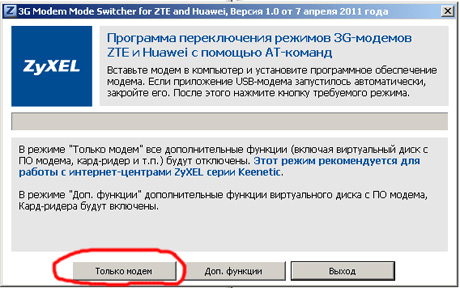Затем надо переключить модем в режим «Только модем». Если этого не сделать, то планшет распознает модем, как флеш карту, и не более.