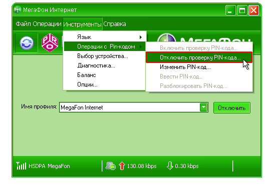 При выполнении всех условий пользователь первым делом подключает модем к компьютеру. На этом шаге устанавливаются все драйвера и приложения. Далее в опциях мобильного клиента на ПК нужно отключить проверку PIN-кода.