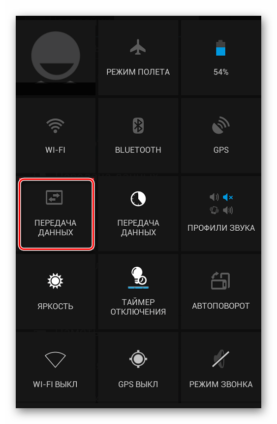 Чтобы мобильный интернет заработал, достаточно сдвинуть жестом вниз от верхней части экрана специальную шторку, где нужно нажать на «Передача мобильных данных» (обозначено иконкой с двумя стрелочками).