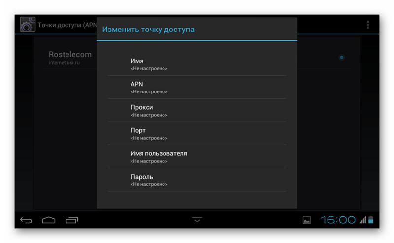 Далее нужно в поле «Точки доступа» вписать параметры, предоставленные оператором.