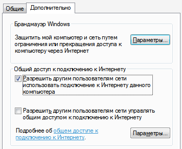 Теперь чтобы разрешить другим пк использовать подключение к интернету этого сервера нужно в свойствах карты подключенной к модему, во вкладке Дополнительно, ставить галочку на Разрешить другим использовать…, ниже на Разрешить другим управлять… советую галочку не ставить, так как вы сервер это для вашей же безопасности.
