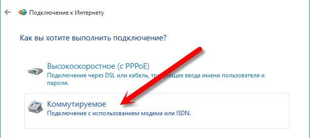 Коммутируемое соединение создаётся точно так же, как и высокоскоростное, по скриншоту вы во всём разберётесь.