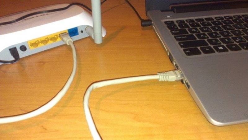 Для осуществления процедуры присоединения берется роутер, на котором есть незанятый разъем, чтобы подключить провод. Один конец кабеля следует подсоединить к LAN-разъему (как правило, желтого цвета), который находится сзади роутера. Другой конец подсоединяется непосредственно к разъему на ПК.