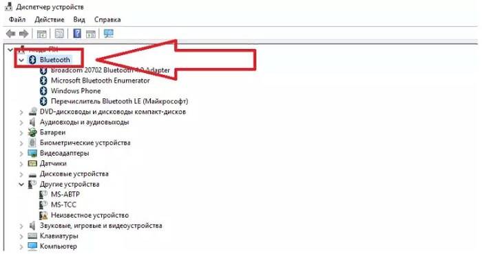 - Теперь необходимо найти любое устройство, в котором будет название Bluetooth. Этот факт будет подтверждением наличие такого модуля.