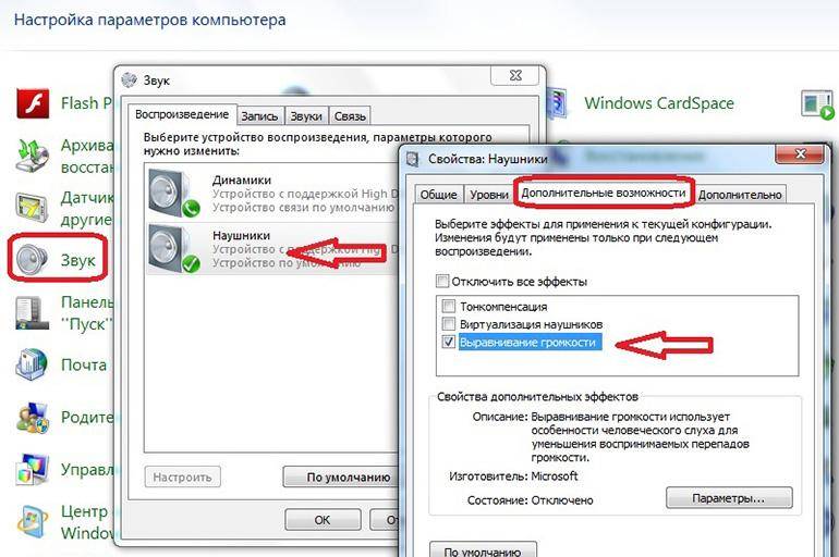 Настройка наушников в Windows 7