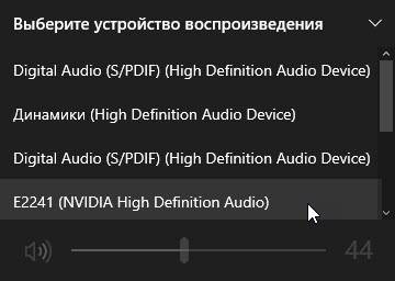 Вполне возможно, что у вас попросту не выбран источник для вывода звука. Можно быстро нажать на значок громкости в трее компьютера ЛКМ мыши, и в списке переключить источник вывода для звуков.
