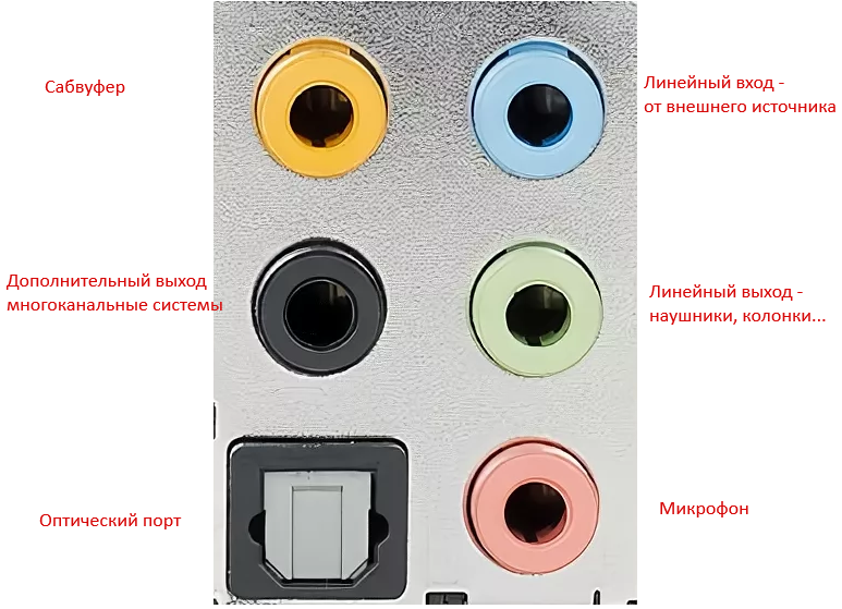 На панели системного блока как правило есть в стандартном наборе три разъёма: линейный выход, такой же вход и для цифровых устройств, которые должны работать в режиме приёма и отдачи звука – в режиме устройства с микрофоном. Во всех вариантах нужно исходить из направленности гаджета. Чаще всего они подключаются по разъёму, который подходит и для агрегатов с микрофоном.