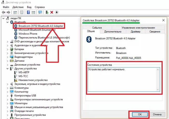 - Последним действием будет двойной клик по адаптеру, где в открывшемся окне должно быть написано, что модуль работает правильно.