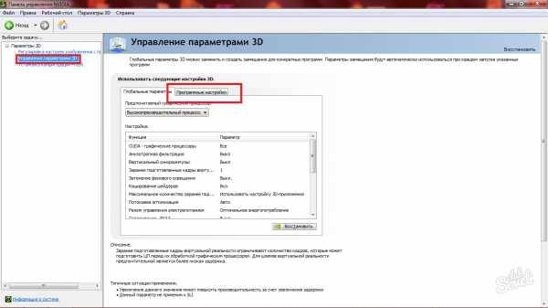 Теперь зайдите в другой раздел под названием «Управление параметрами 3D». Откройте пункт «Программные настройки».