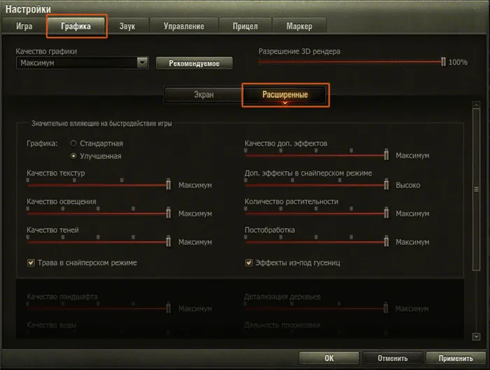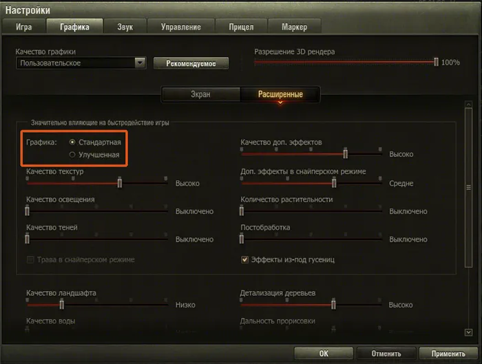 Основные настройки графики World of Tanks