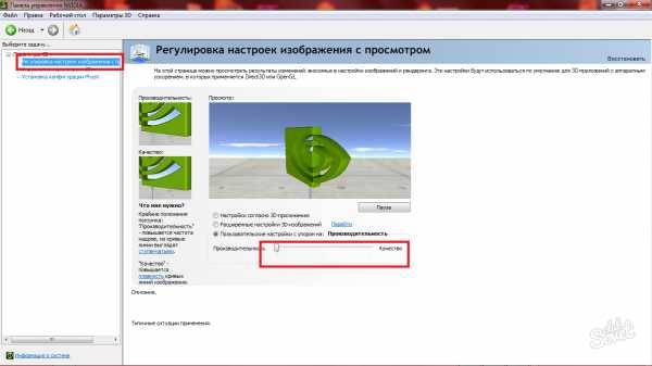 - Сначала зайдите в раздел «Регулировка настроек изображения». Здесь вы можете настроить приоритет работы видеокарты: на производительность либо на качество.