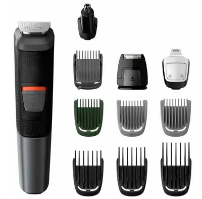 Лидером среди триммеров для носа и ушей становится еще одна модель от нидерландской компании Philips MG5730 Series 5000. Это набор для стрижки, имеющий 10 различных установок длины. Прибор подходит для ухода за волосами, щетиной, бровями, носом и ушами.