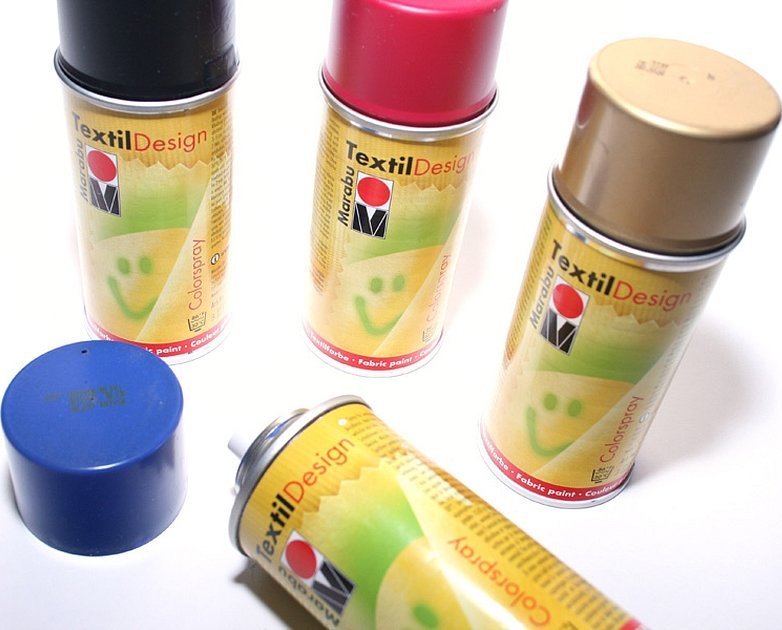 Добиться равномерной окраски баллончиковой краской едва ли удастся, зато можно проявить фантазию и создать причудливые узоры. При использовании аэрозоля лучше не брезговать трафаретом, иначе можно захватить лишнюю ткань.