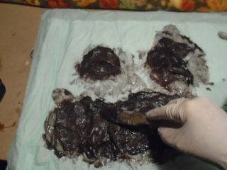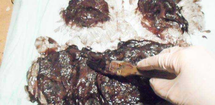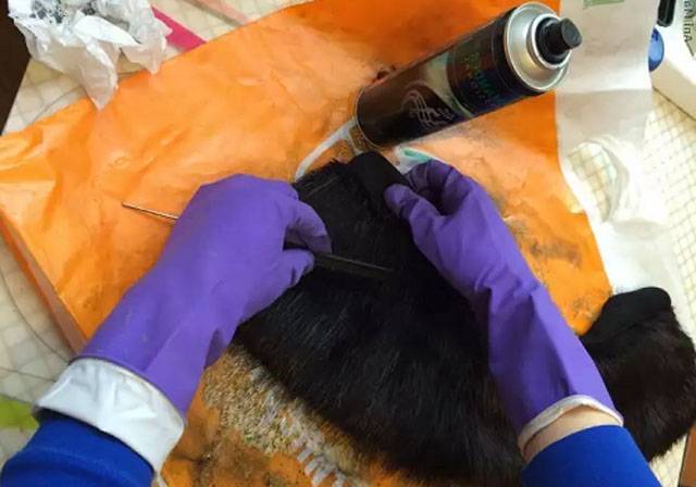 После того, как краска выполнит свою функцию, ее нужно смыть теплой водой. Затем на мех наносят бальзам для волос. Через несколько минут нужно сполоснуть шкурку и от него. Последний этап — ополаскивание водой с уксусом. После этого шкурку натягивают, чтобы она в таком положении высохла.