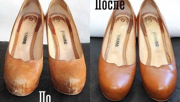 Полезный совет! Если вы имеете дело с гладкой кожей, а дефекты на ней незначительны, постарайтесь для начала испробовать менее радикальные способы. Например, купите хороший крем нужного оттенка и тщательно обработайте туфли. Вполне возможно, этого хватит, чтобы вернуть обуви красивый внешний вид.