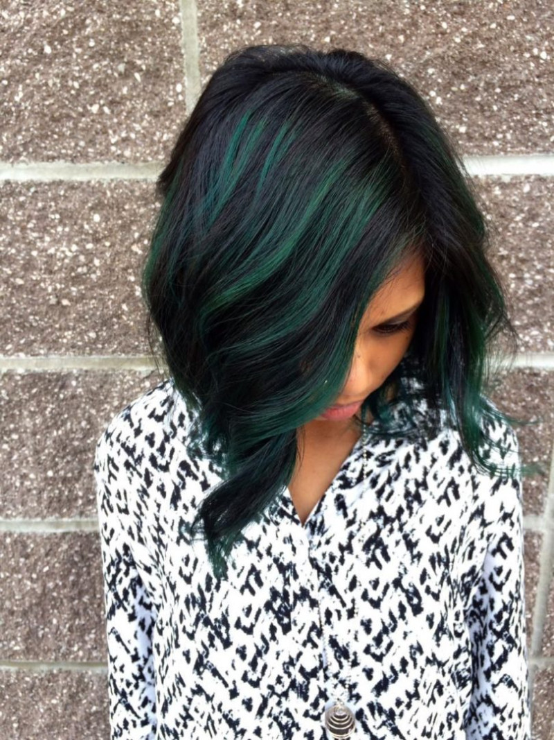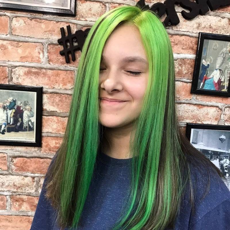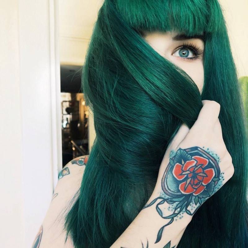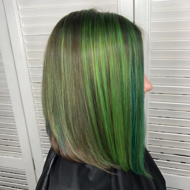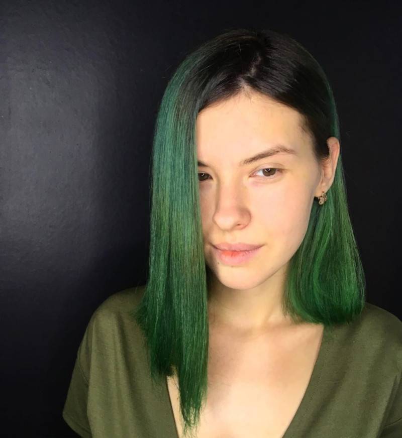 Если у вас длинные волосы и вы опасаетесь окрашивать их в зеленый, вы можете попробовать нестойкие краски и оттеночные тоники. Еще одна прекрасная альтернатива – покраска отдельных прядей либо кончиков волос.