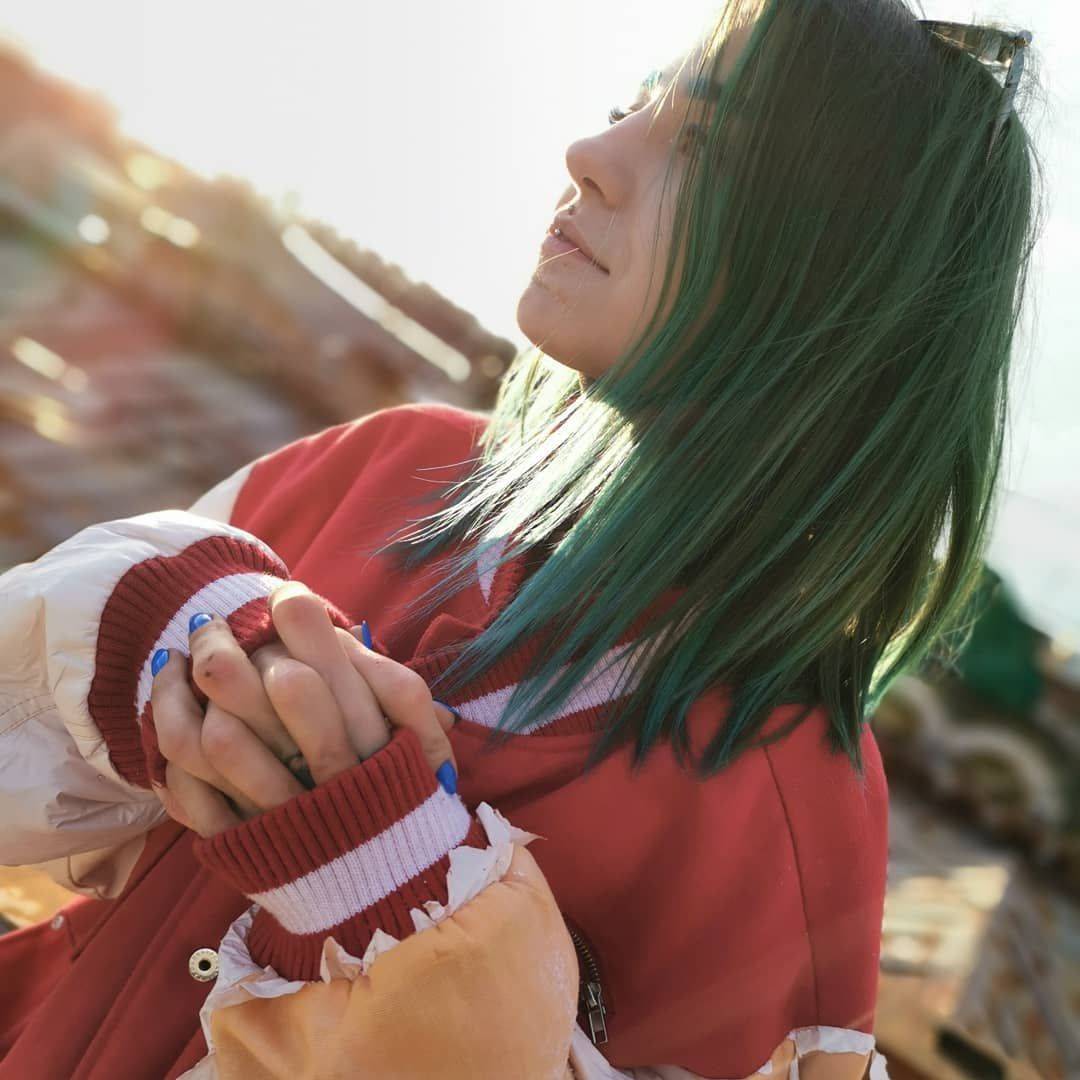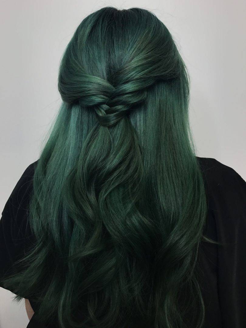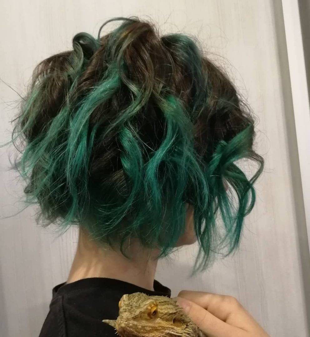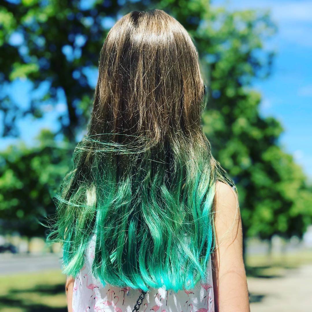 Если у вас длинные волосы и вы опасаетесь окрашивать их в зеленый, вы можете попробовать нестойкие краски и оттеночные тоники. Еще одна прекрасная альтернатива – покраска отдельных прядей либо кончиков волос.