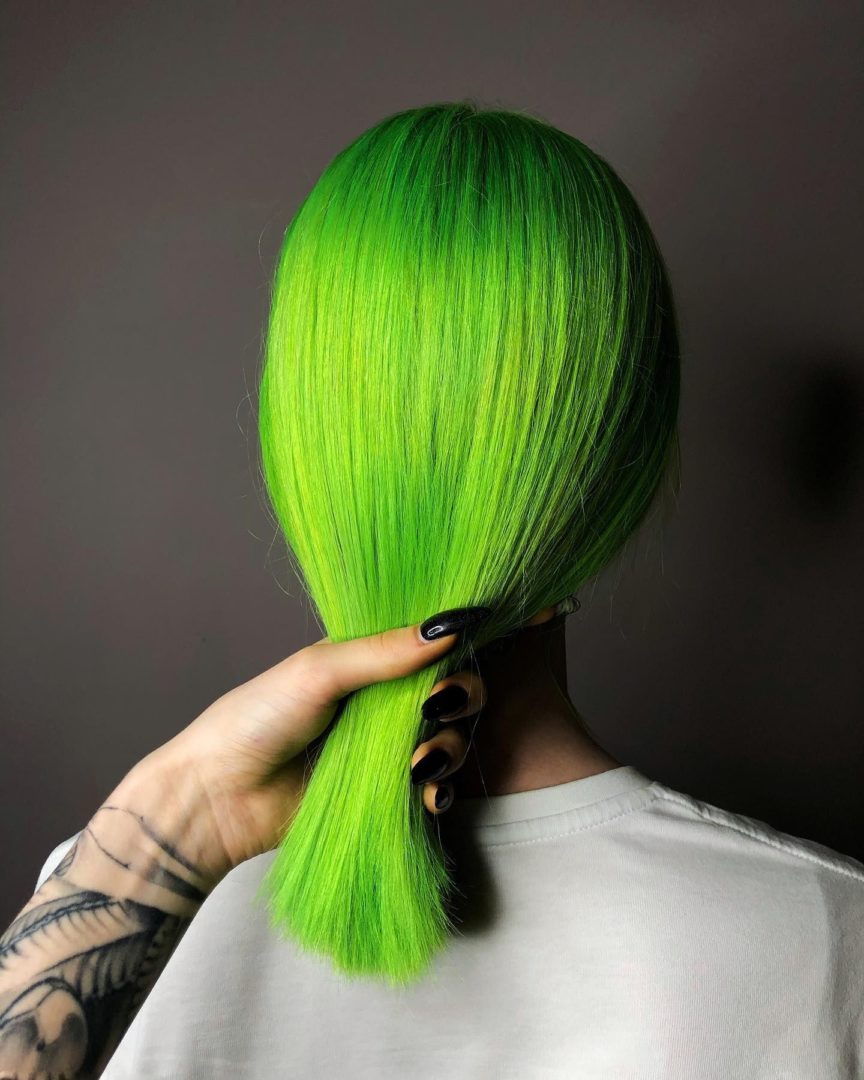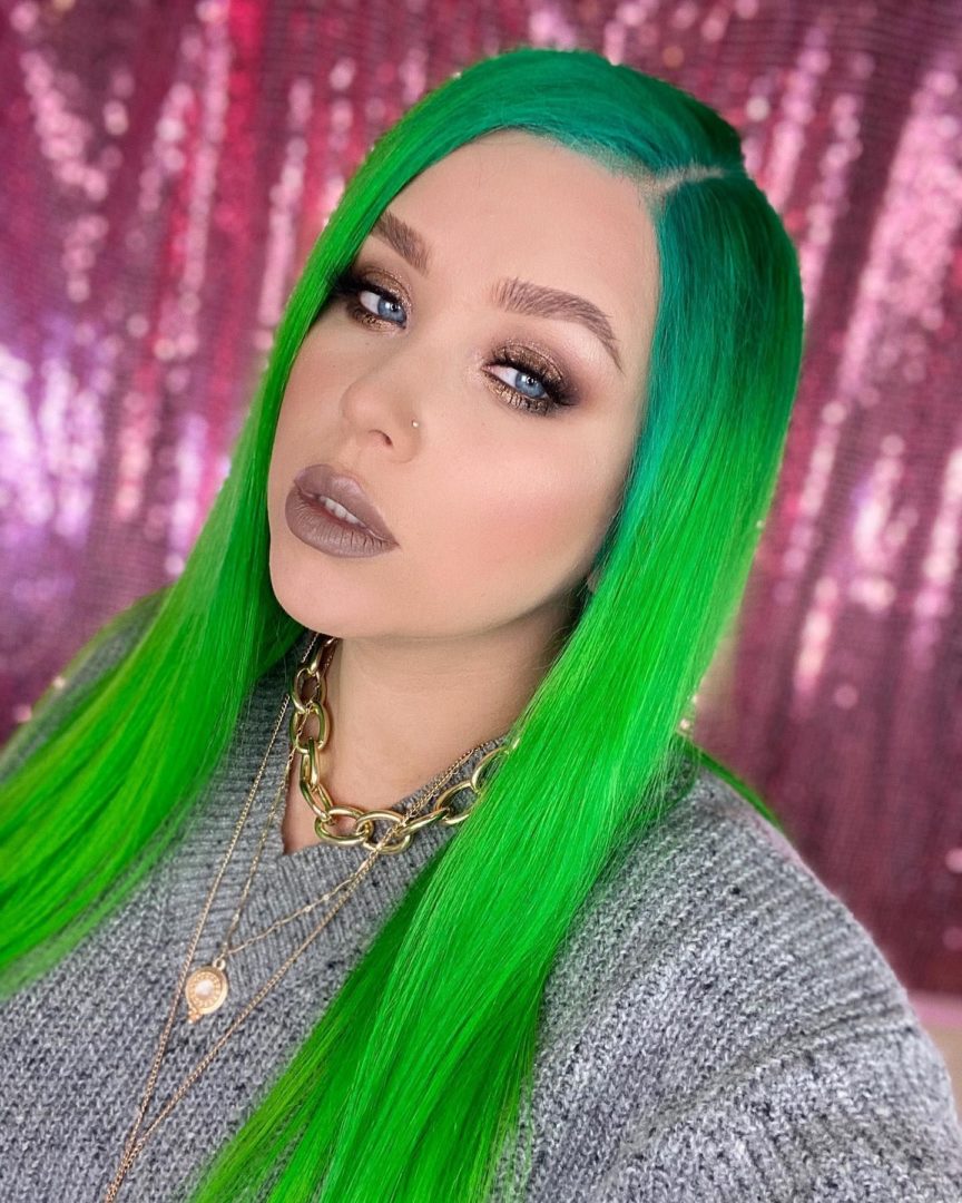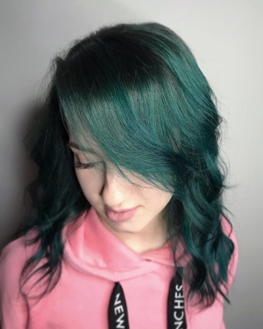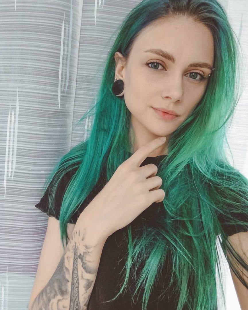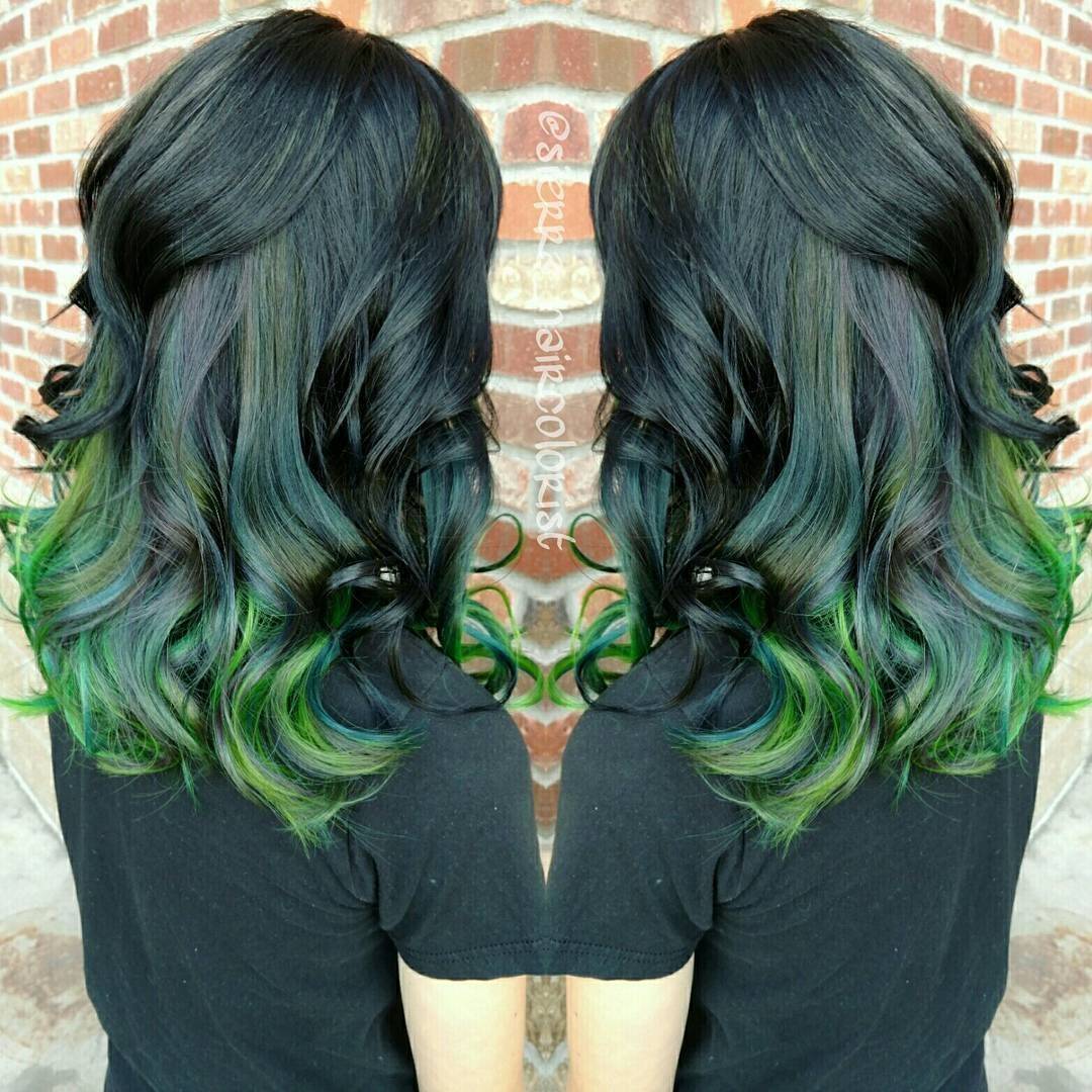 Если у вас длинные волосы и вы опасаетесь окрашивать их в зеленый, вы можете попробовать нестойкие краски и оттеночные тоники. Еще одна прекрасная альтернатива – покраска отдельных прядей либо кончиков волос.