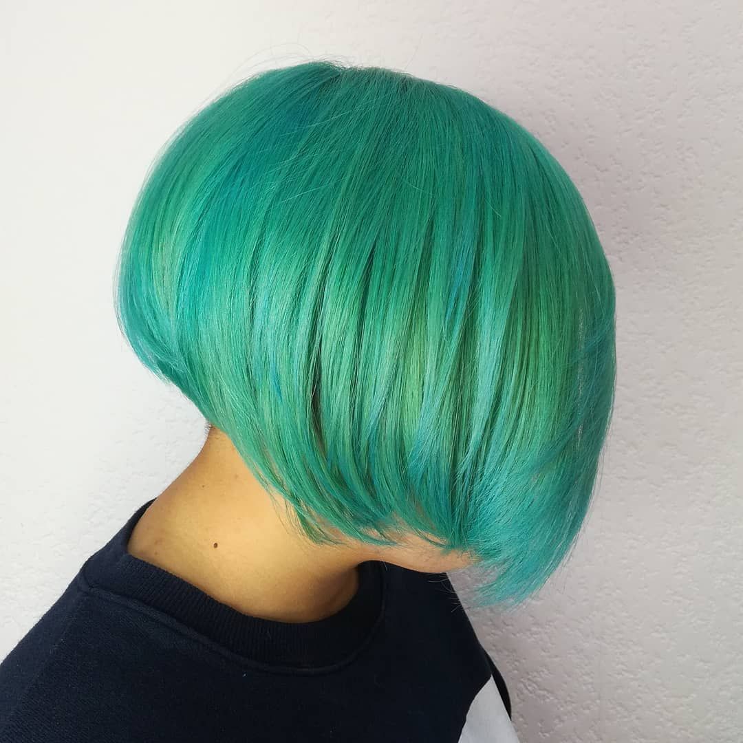 Окрашивание в техниках омбре и балаяж широко применяются на зеленых волосах. Это позволяет создавать необычный образ с плавным переходом цвета. Например, если вы хотите окрасить короткие волосы, наилучшим вариантом будет сделать растяжку более светлого оттенка корней в более темный на кончиках.