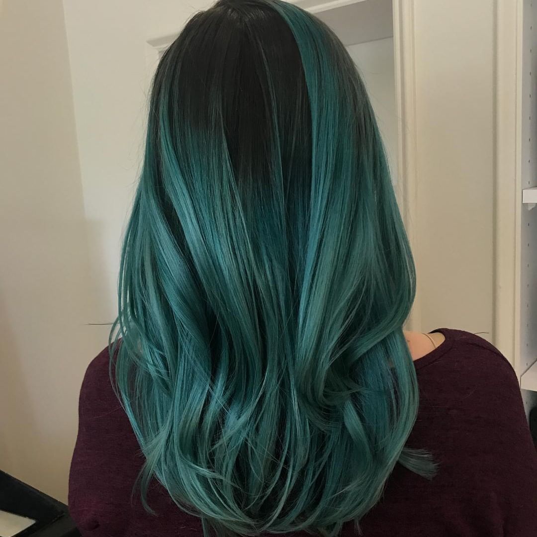 и желаемого оттенка, размешиваются в любом бальзаме или ополаскивателе для волос (бальзама берётся столько, сколько будет достаточно, чтобы равномерно окрасить волосы), и через несколько минут (такая краска берётся очень быстро) волосы — насыщенного и ровного зелёного с бирюзовым оттенком