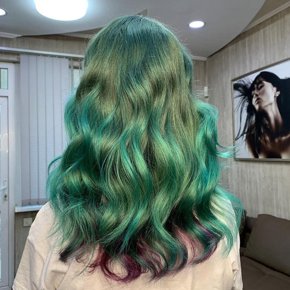 Окрашивание волос в светлые оттенки зеленого: фото-идеи