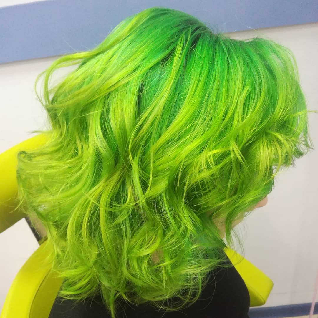 - Спрей, лак. Легко наносятся, придают шевелюре сочный зеленый цвет. Легко смывается. Ярче выглядит на светлом волосе. Представлены марками: Fluo Hair Clour green, YniQ (неоновая), Stargazer.