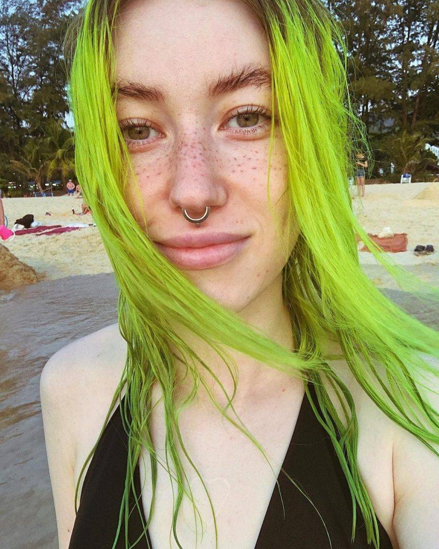 Если вы решили покрасить волосы в зеленый цвет, нужно понимать его особенность усиливать красноту и пигментацию на лице. Поэтому если у вас есть высыпания, купероз или пигментные пятна, то, прежде всего, перед покраской стоит вылечить кожу.