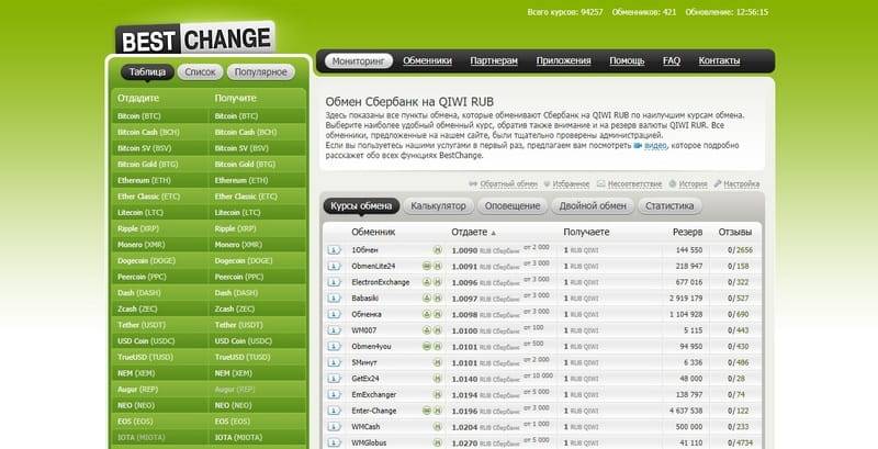 Переходим на сайт мониторинга электронных обменников (к примеру, Бест Чендж).