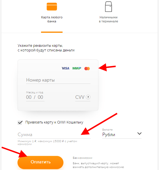 Как положить деньги на Киви кошелёк через терминал, телефон, с банковской карты? Как положить деньги на Киви кошелек без комиссии?