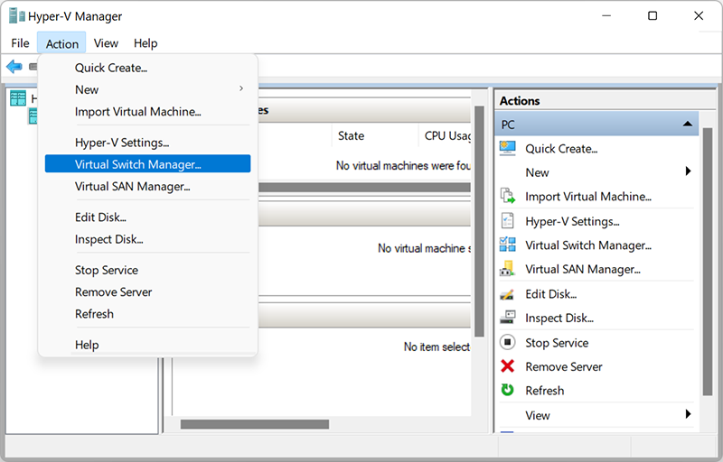 Вы можете легко создать виртуальный коммутатор с помощью диспетчера Hyper-V, следуя этой пошаговой инструкции: