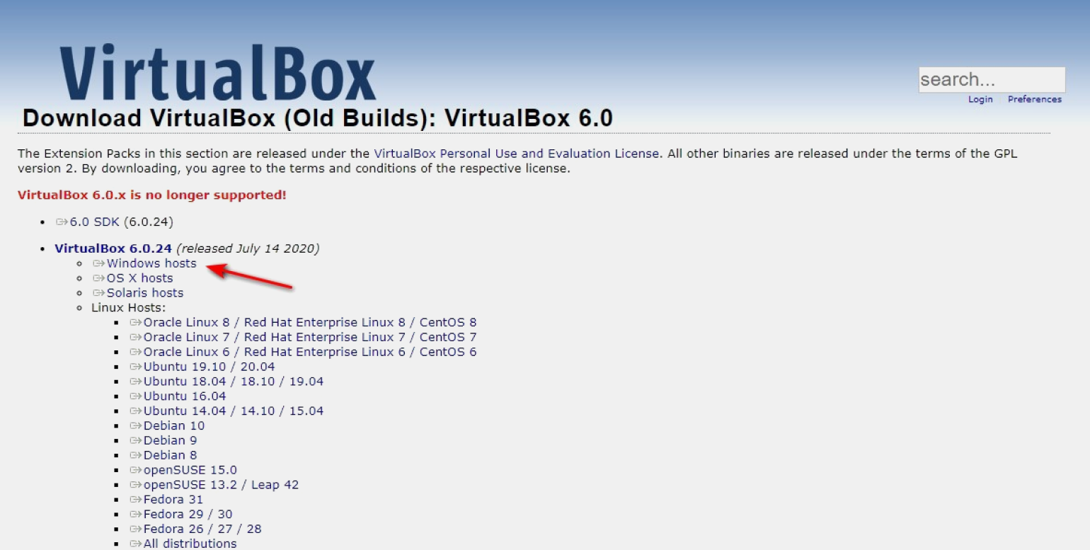 На странице находится список дистрибутивов для загрузки на ПК под управлением разных ОС. Мы будем устанавливать программу на ПК под управлением Windows — следовательно, выбираем версию Windows hosts. Она первая в списке.