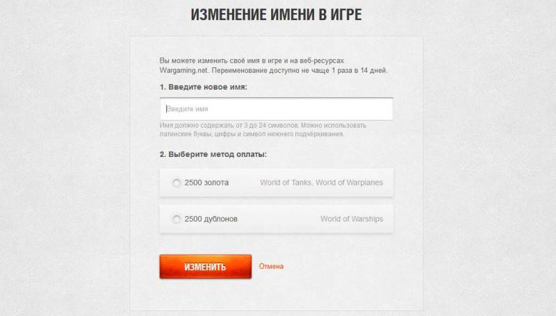 Внимание! Стоимость изменения имени пользователя — 2 500. Процесс изменения игрового имени может занять до двух суток