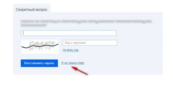 В панели «Секретный вопрос» кликните ссылку «Я не помню ответ».